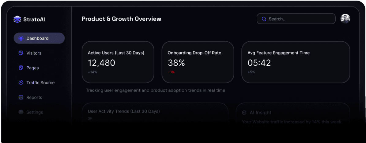 StratoAI is designed to help SaaS teams understand what matters at a glance, without digging through complex dashboards or raw data.